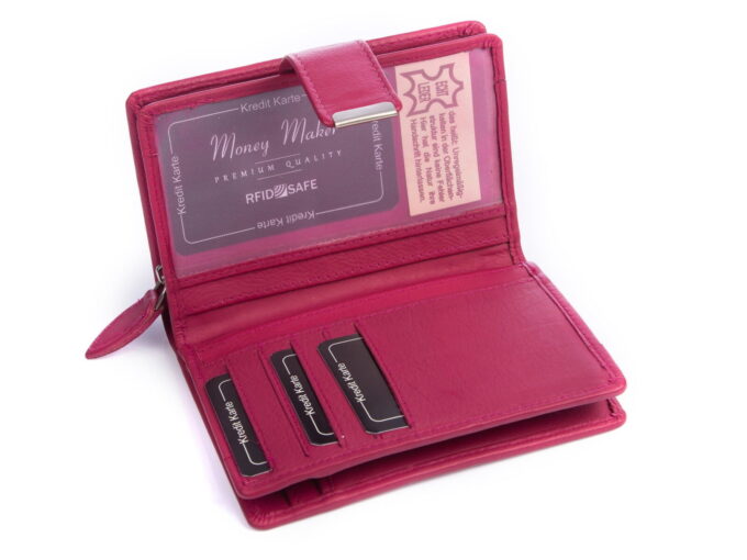 Gładki różowy skórzany portfel damski Money Maker RFID