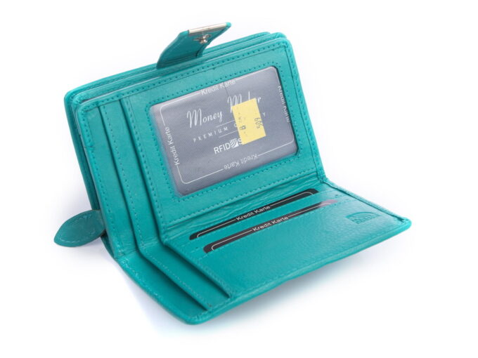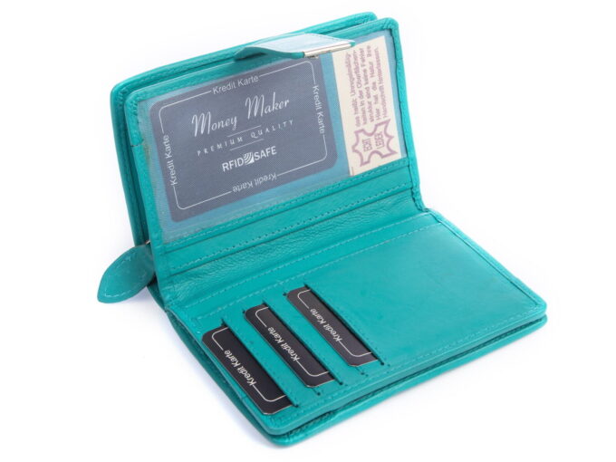 Gładki turkusowy skórzany portfel damski Money Maker RFID