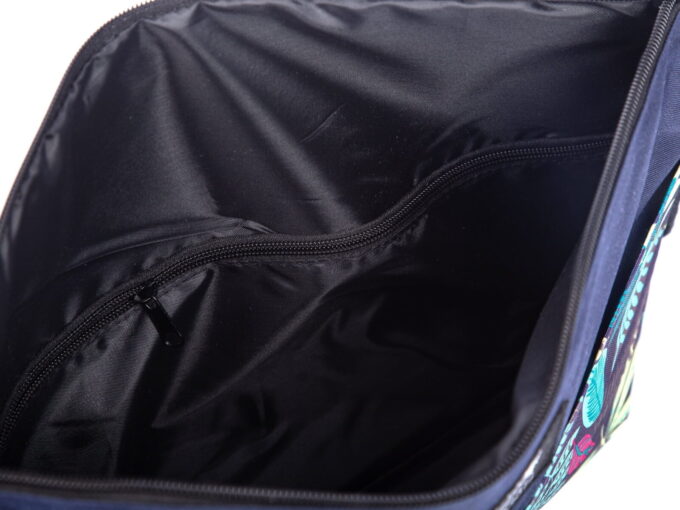 • Granatowa torba damska na ramię z motywem dżungli
