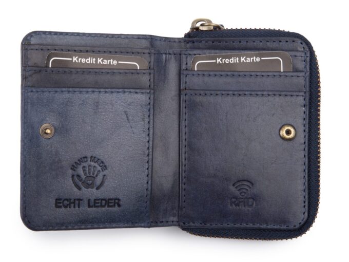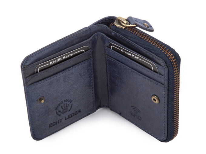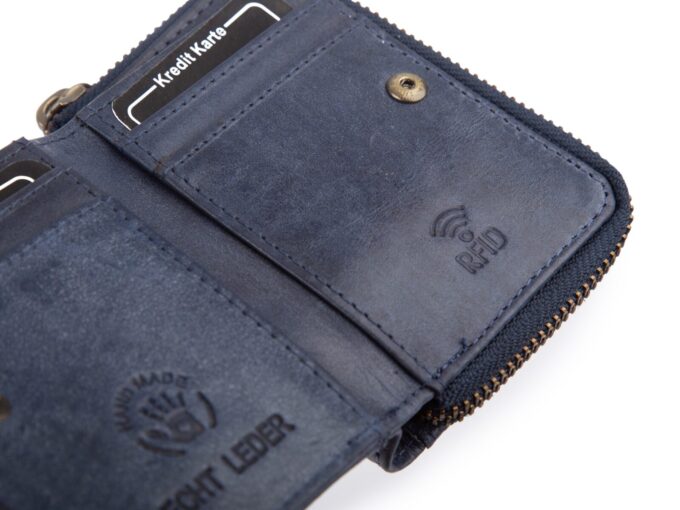• Portmonetka z ochroną kart RFID. Chroni ona znajdujące się wewnątrz karty zbliżeniowe przed dostępem z zewnątrz.