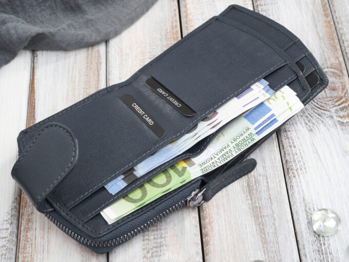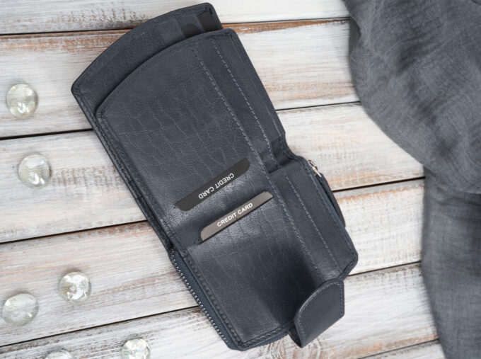 - Portfel wyposażono w ochronę kart zbliżeniowych RFID.