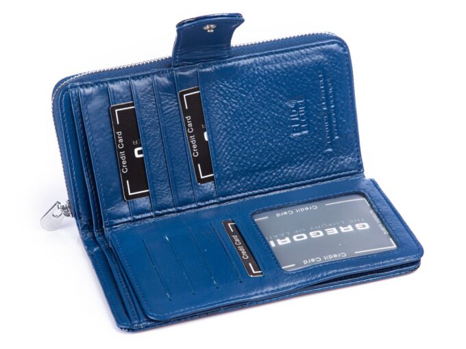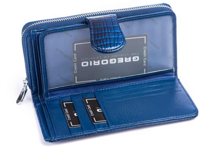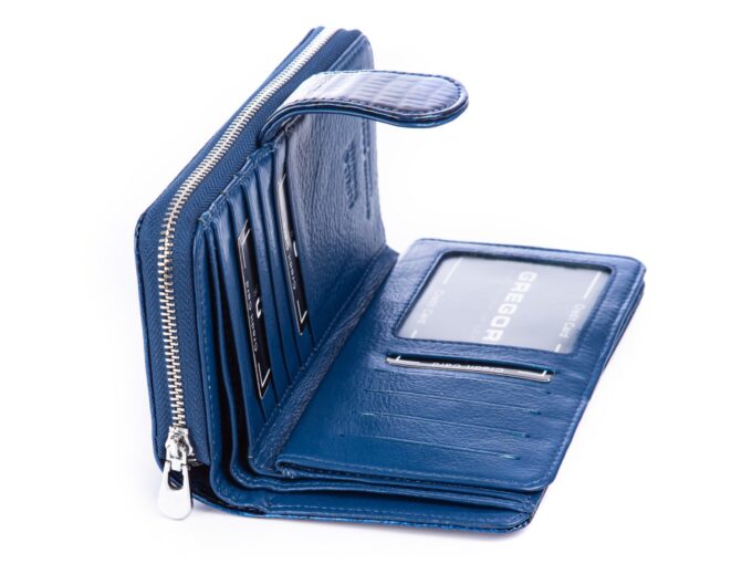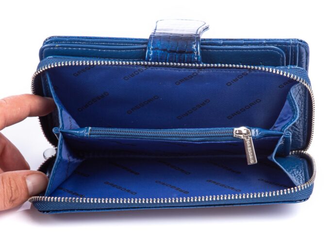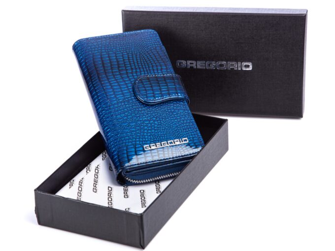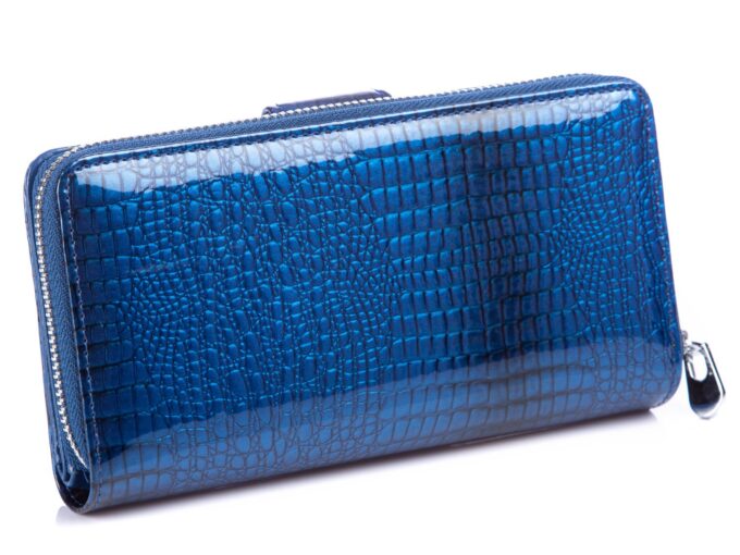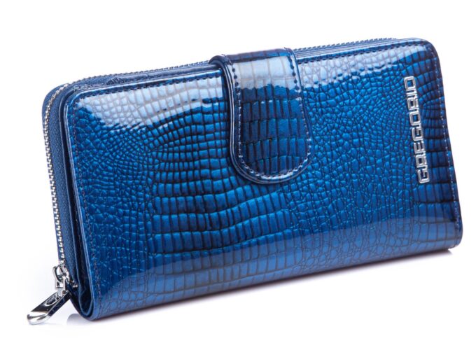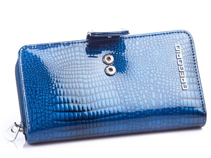 GREGORIO Portfel damski niebieski kroko lakierowany