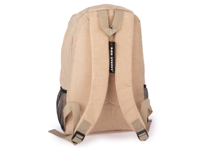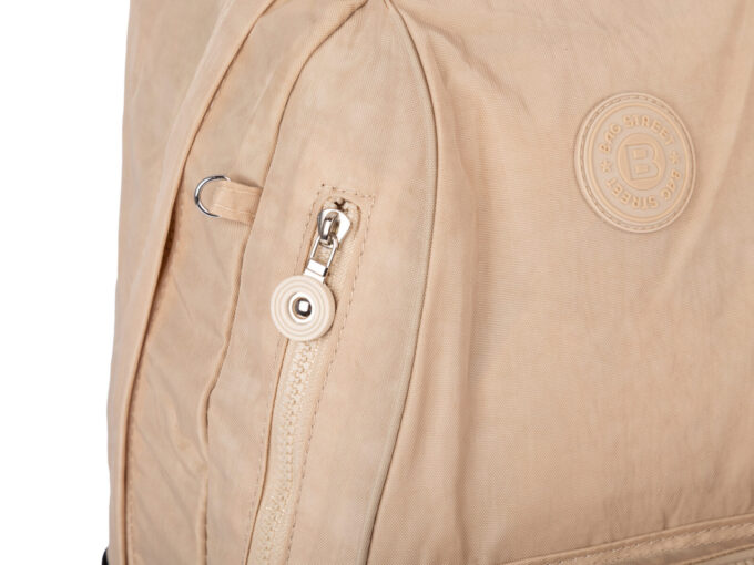 - Duży materiałowy plecak turystyczny marki Bag Street w kolorze jasnobeżowym.