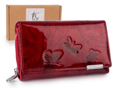 Duży portfel damski lakierowany czerwony z motylkami skóra naturalna Jennifer Jones