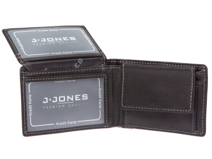 Kieszonkowy męski portfel skórzany czarny J Jones RFID