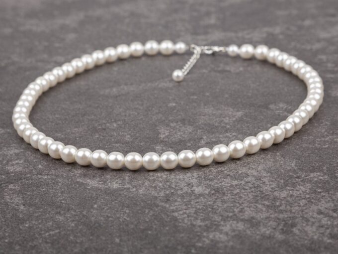 Klasyczny naszyjnik damski z białych pereł Preciosa, ponadczasowy symbol elegancji i kobiecości. Wykonany z gładkich, szklanych pereł o delikatnym, satynowym połysku, pięknie układa się na szyi i subtelnie odbija światło. To biżuteria, która nigdy nie wychodzi z mody – doskonale dopełni zarówno stylizacje wieczorowe, ślubne, jak i eleganckie zestawy biurowe.