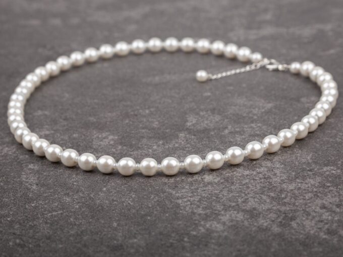 - Klasyczny, elegancki naszyjnik damski z białymi perłami Preciosa.