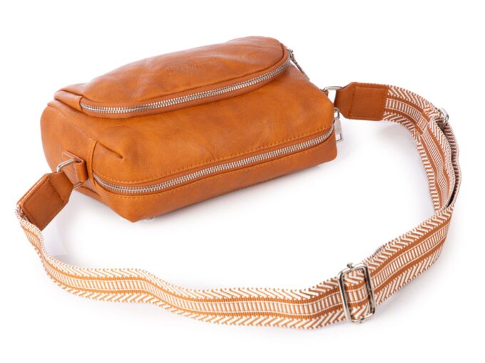 - Z przodu torebki ulokowano podręczną kieszonkę na dodatkowe akcesoria, zapinaną na metalowy suwak.