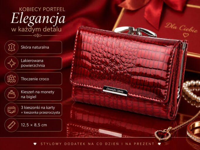 - Czerwone portfele damskie, Matowe portfele damskie, Portfele damskie, Portfele damskie vintage, Portfele damskie w pudełku, Portfele dla dziewczynki, Średnie portfele damskie