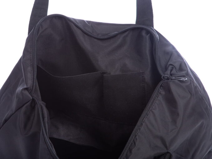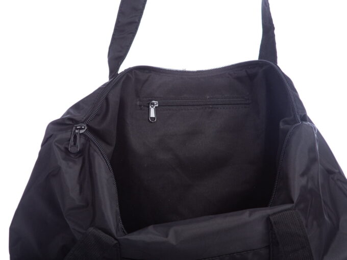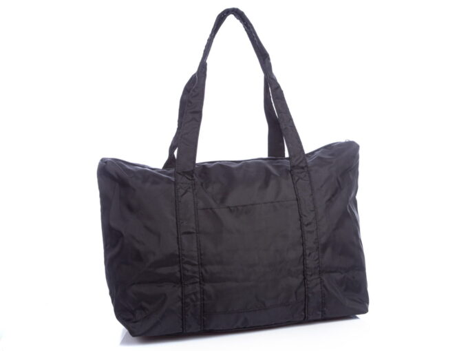 - Bardzo lekka, wykonana z materiału, pojemna torba podróżna w kolorze czarnym.