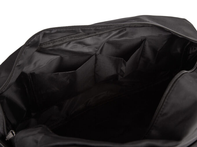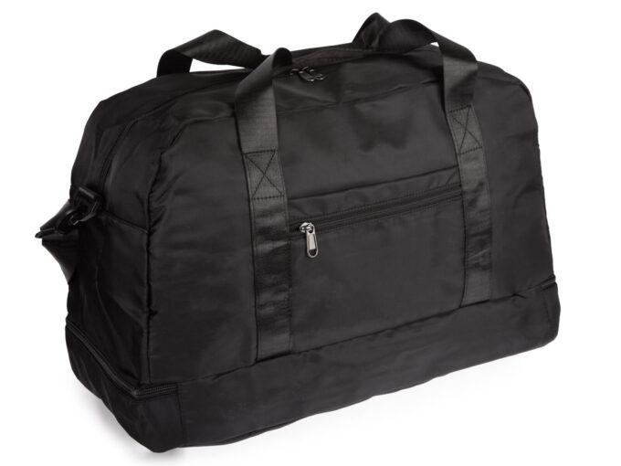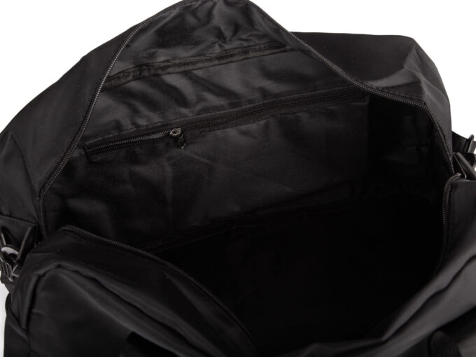 - Lekka, czarna torba sportowa na siłownię lub fitness.
