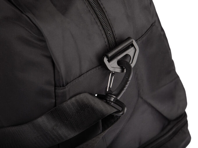 - Dodatkowa, oddzielona od komory głównej, kieszeń znajduje się na dole torby. Można w niej umieszczać np. zużyte po treningu ubrania aby oddzielić je od komory głównej. Jest ona także zapinana na zamek błyskawiczny.