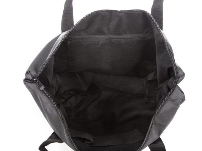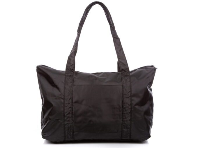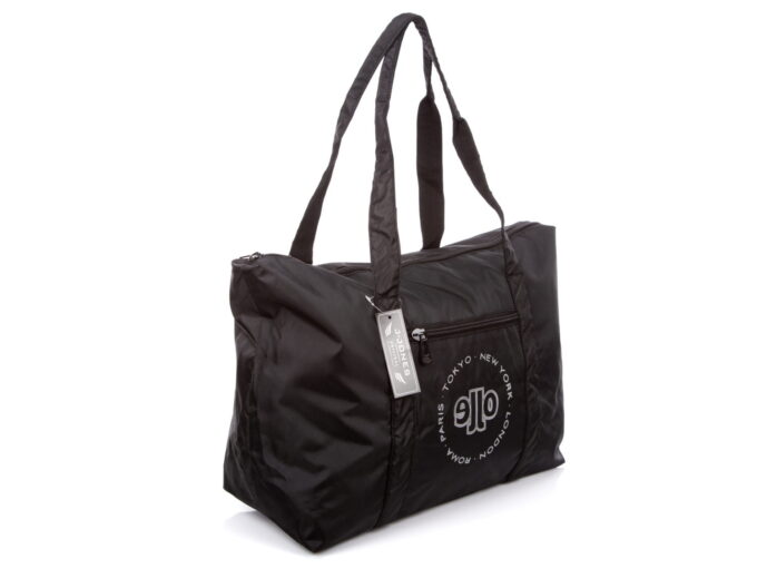 - Bardzo lekka, wykonana z materiału, pojemna torba podróżna w kolorze czarnym.