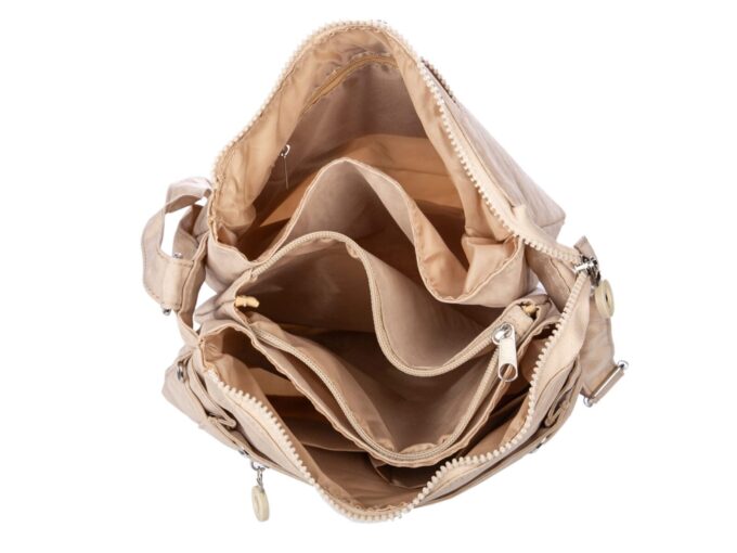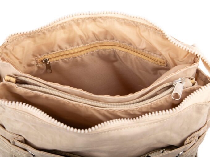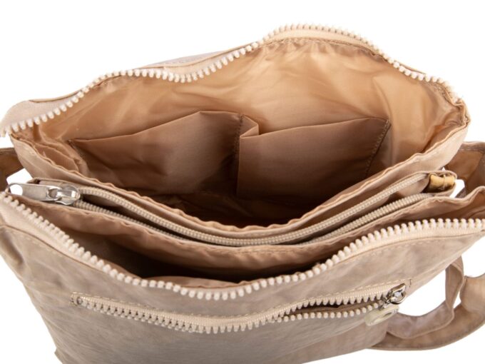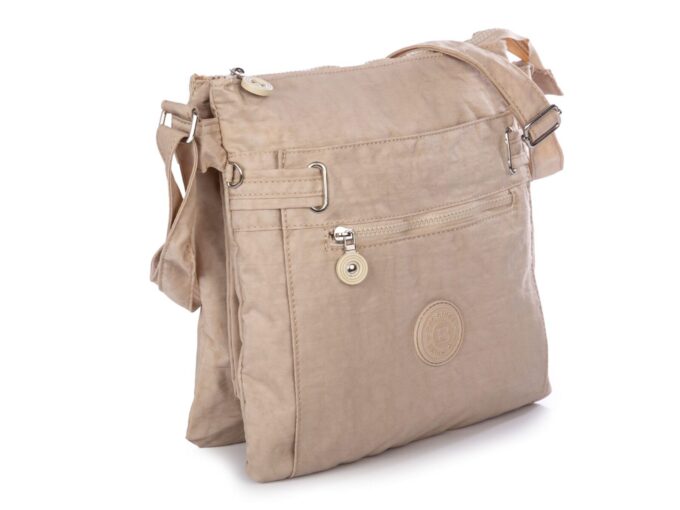 Lekka materiałowa torebka na ramię z wieloma przegródkami jasny beż Bag Street