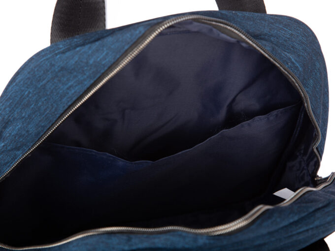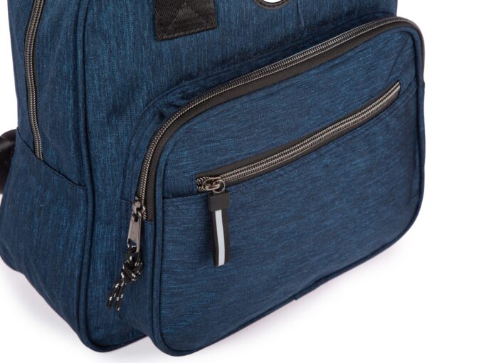 - Lekki, materiałowy plecak turystyczny w kolorze ciemnoniebieskim.