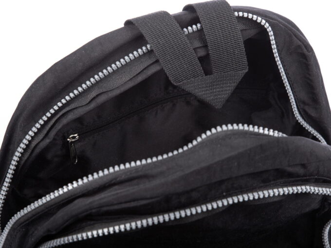 - Druga, mniejsza komora znajduje się z przodu plecaka, także zapinana na zamek.