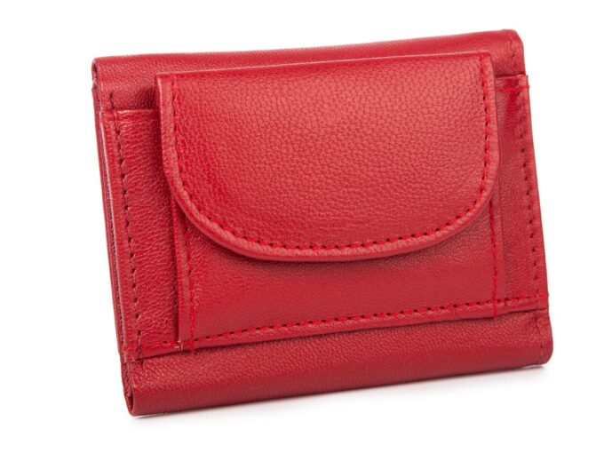 - Mała skórzana portmonetka damska w kolorze czerwonym.