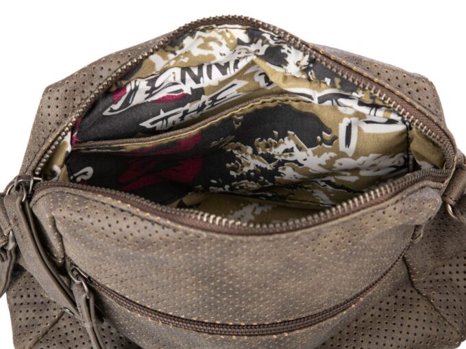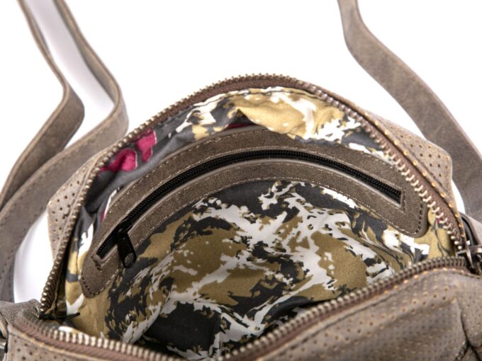 - Wewnątrz znajduje się kieszonka zapinana na suwak oraz kieszonka otwarta na drobiazgi,