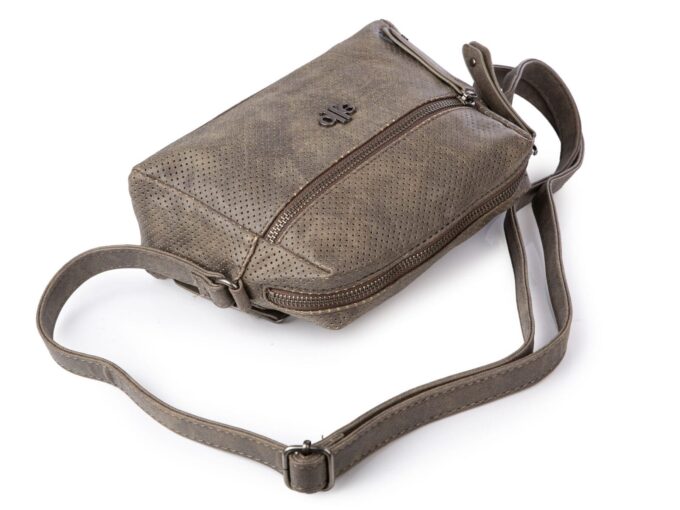 - Modna, mała torebka damska niemieckiej marki Jennifer Jones w kolorze ciemno-szarym z odcieniem brązu,