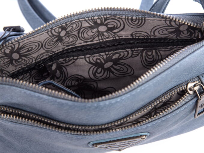 - Wewnątrz znajdują się dodatkowa kieszonka zapinana na zamek, oraz dwie kieszonki otwarte na telefon i akcesoria.