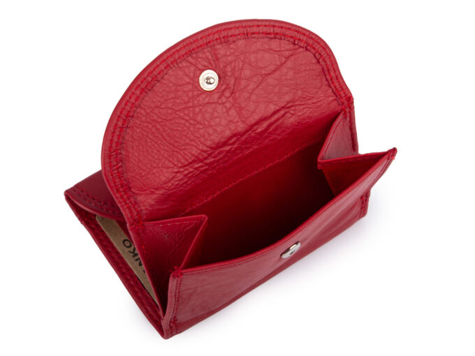 - Malutki, kieszonkowy portfel skórzany w kolorze czerwonym.
