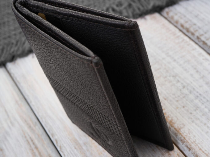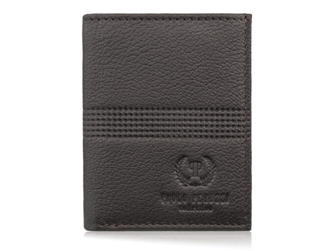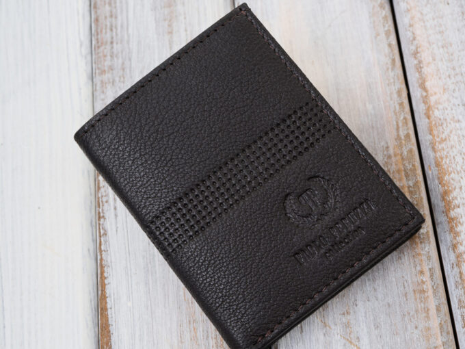 Ciemnobrązowy mini-portfel męski z miękkiej skóry naturalnej — ultracienki, mieszczący 6 kart i banknoty (przegroda 13,5×8,5 cm), z ochroną RFID, tłoczonym logo i eleganckim pudełkiem, idealny do kieszeni marynarki. Pełna specyfikacja ⬇