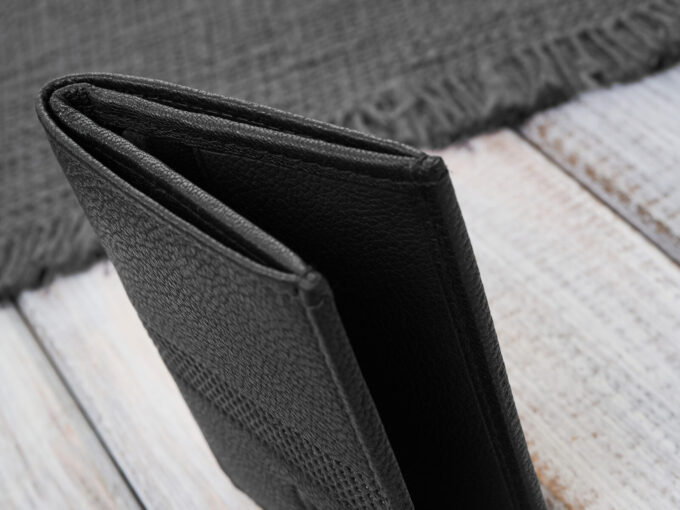 - Idealnie sprawdzi się w formalnych sytuacjach jako mała portmonetka męska np. do kieszeni marynarki.
