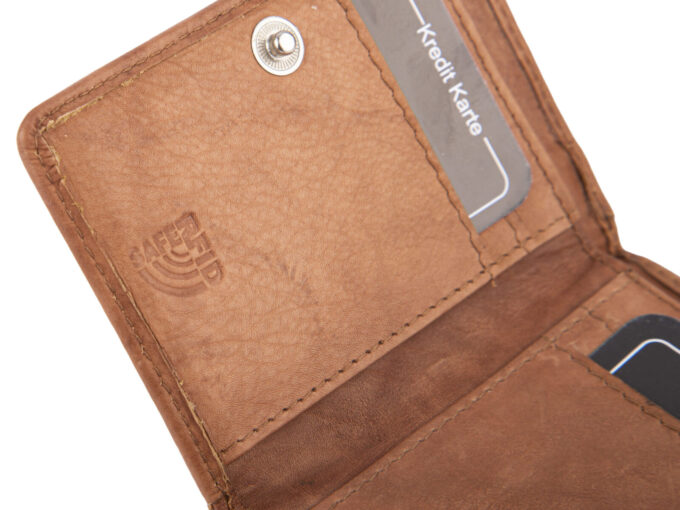 - Portfel z ochroną kart zbliżeniowych RFID. Dzięki zabezpieczeniu RFID karty zbliżeniowe znajdujące się wewnątrz portfela są chronione przed dostępem z zewnątrz bez naszej wiedzy.