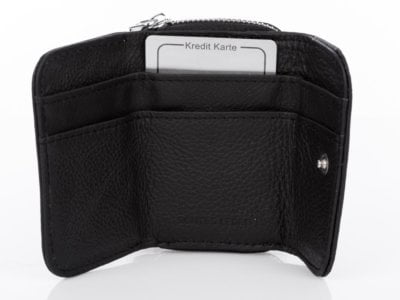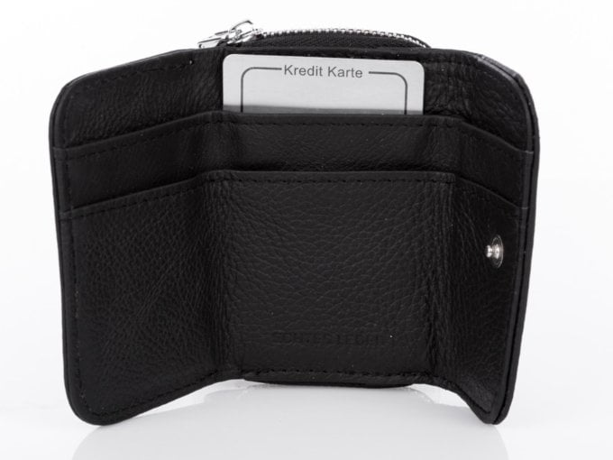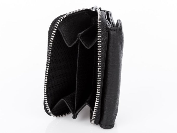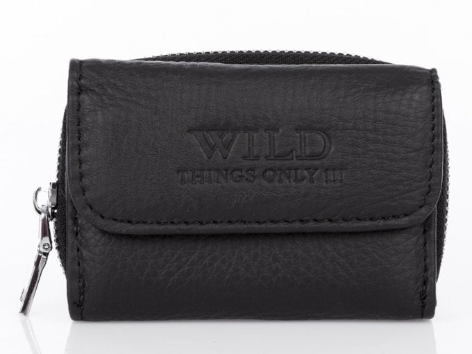 • Mały czarny portfel męski Wild’s zapinany na zamek ze skóry