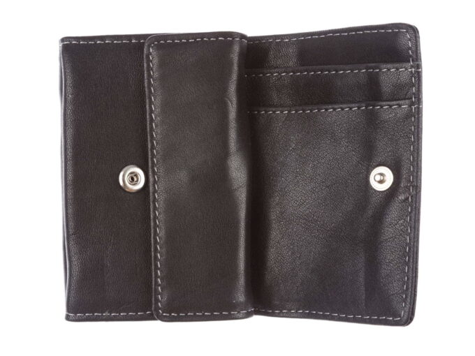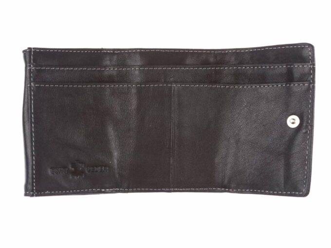 - Wnętrze portfela zapinane na mocny, metalowy zatrzask,