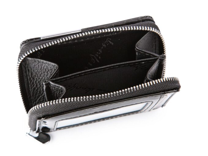 - Posiada kieszonkę na bilon z dwiema przegródkami, zamykaną na metalowy zamek błyskawiczny.