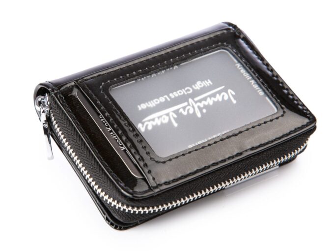Mały portfel damski czarny lakierowany z suwakiem Jennifer Jones