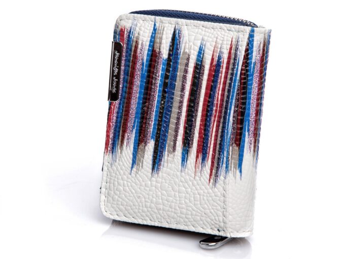 Mały lakierowany portfel damski biało niebieski Jennifer Jones