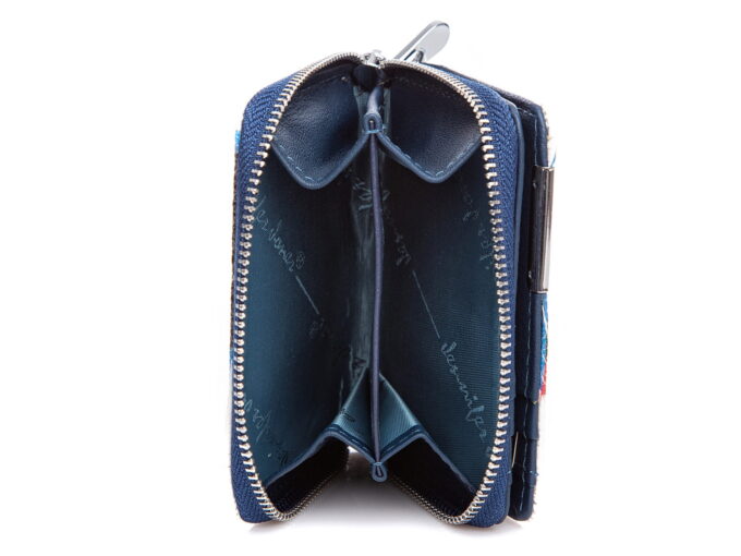 Mały portfel damski w motylki – niebieski, skórzany, lakierowany Jennifer Jones
