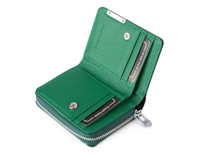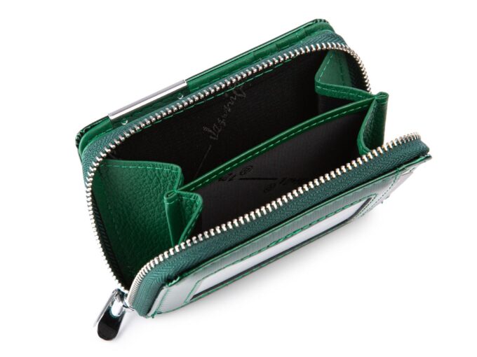 - Posiada kieszonkę na bilon z dwiema przegródkami, zamykaną na metalowy zamek błyskawiczny.