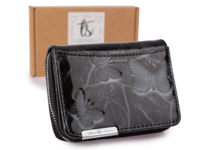 Mały portfel damski w motylki – czarny, skórzany, lakierowany Jennifer Jones