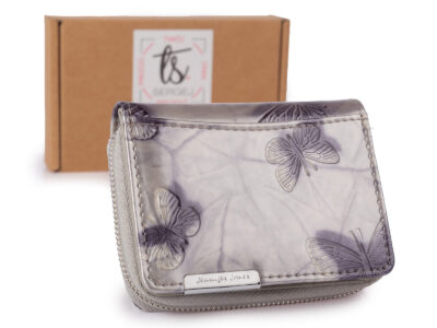 Mały portfel damski w motylki – srebrny, skórzany, lakierowany Jennifer Jones