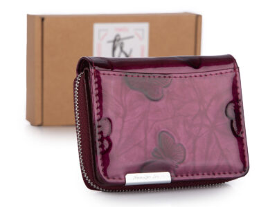 Mały portfel damski w motylki – fioletowy, skórzany, lakierowany Jennifer Jones