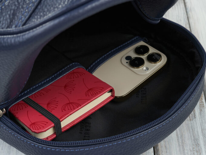 - W środku głównej komory znajduje się dodatkowa kieszeń zapinana na zamek, oraz dwie kieszonki „otwarte”, na telefon i akcesoria.