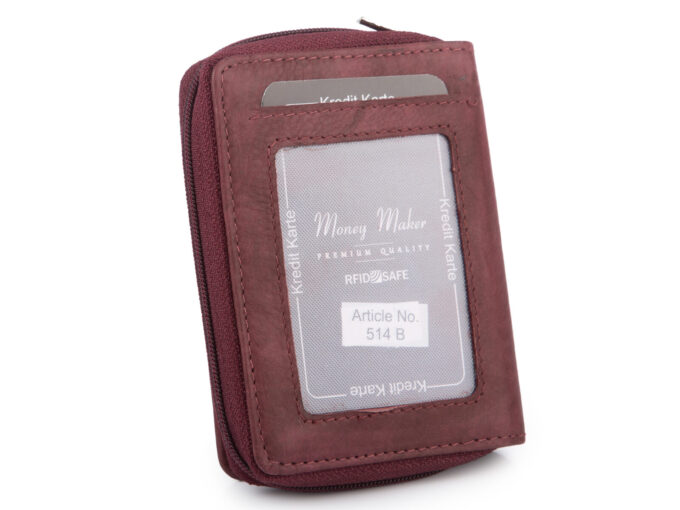 Mały czerwony portfel damski z miękkiej skóry naturalnej z ochroną RFID Money Maker