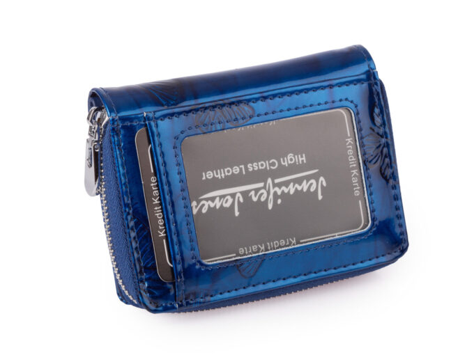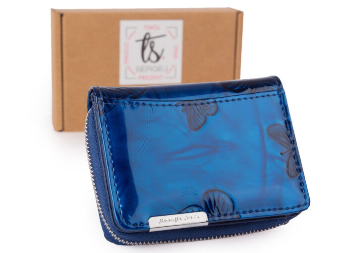 Mały portfel damski w motylki – niebieski, skórzany, lakierowany Jennifer Jones