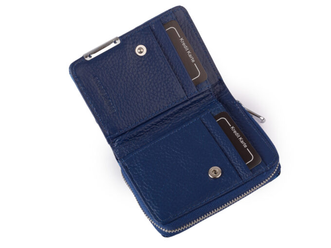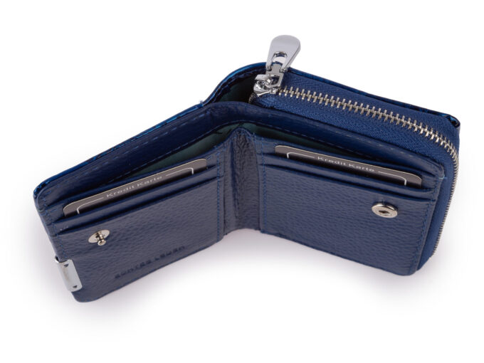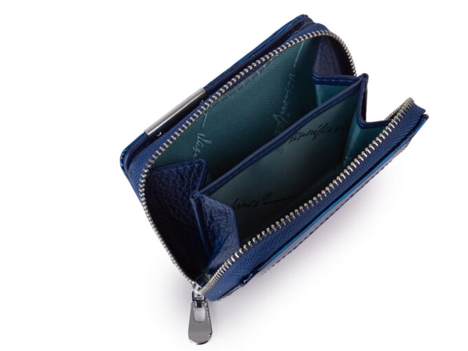 - Posiada pojemną kieszonkę na bilon z dwiema przegródkami, zamykaną na metalowy zamek błyskawiczny.