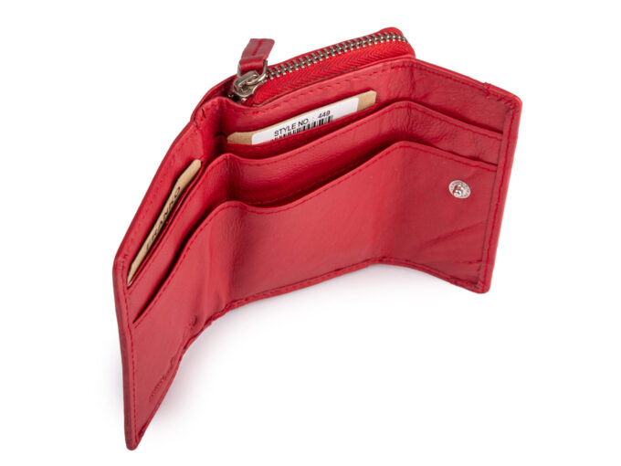 Mały portfel skórzany RFID składany kieszonkowy czerwony Franko