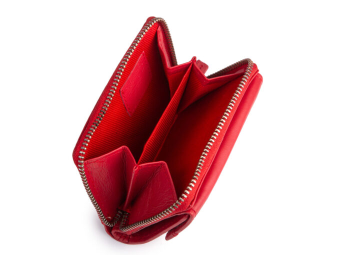 • Mały, czerwony portfel kieszonkowy niemieckiej marki Franko.