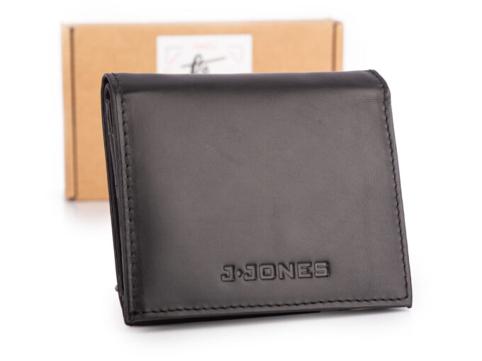 Mały skórzany czarny portfel damski do małej torebki J Jones