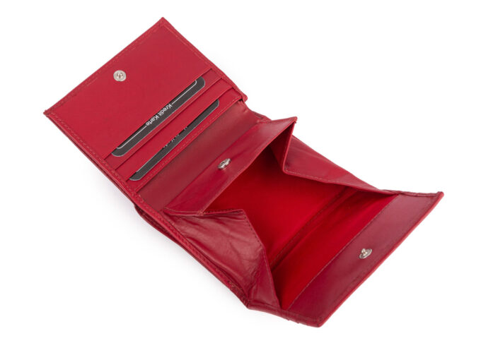 - Stylowy, kompaktowy, czerwony, portfel damski wykonany z wysokiej jakości miękkiej i przyjemnej w dotyku skóry naturalnej.