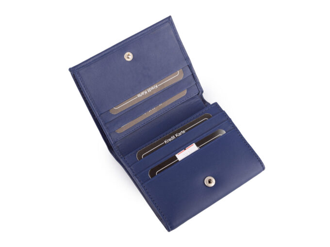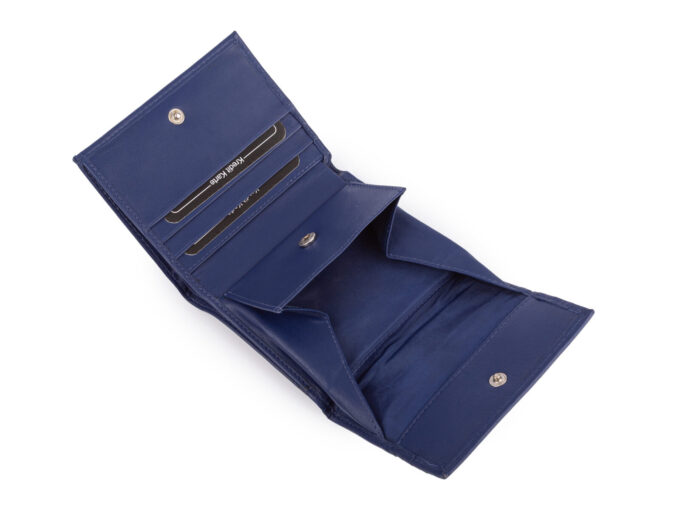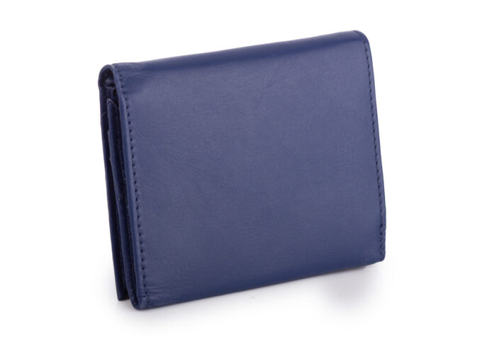 - Stylowy, kompaktowy granatowy portfel damski wykonany z wysokiej jakości miękkiej i przyjemnej w dotyku skóry naturalnej.