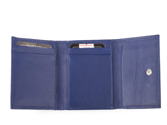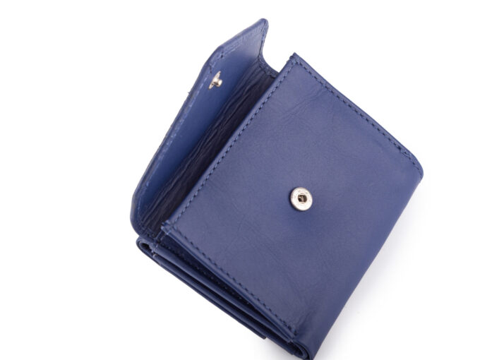- Mały, skórzany portfel damski w kolorze granatowym.