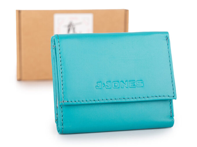 Mały, skórzany portfel damski w kolorze turkusowym J Jones