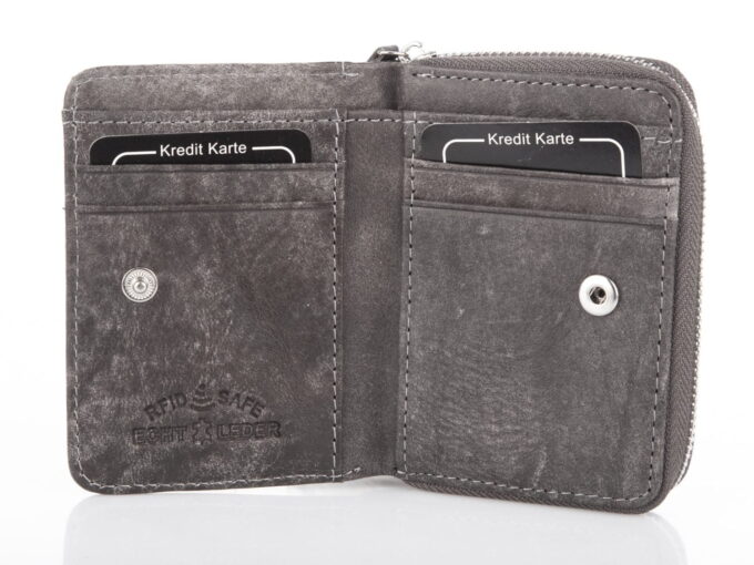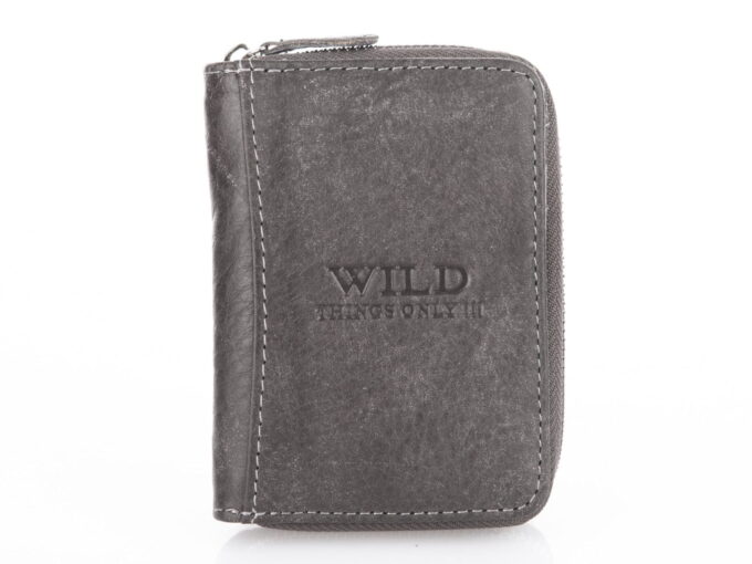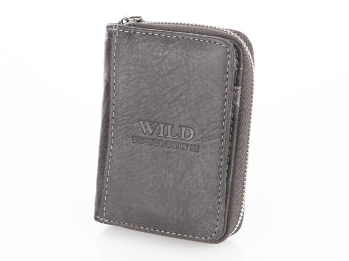 Mały, skórzany portfel męski szary Wild’s zapinany dookoła na zamek RFID